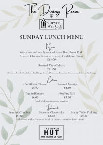 Bookings for the 1st February Sunday Lunch close on Friday 23rd January