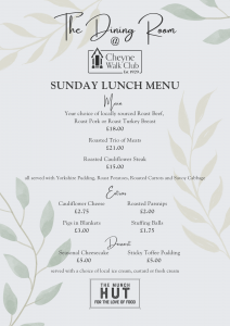 Bookings for the 29th March Sunday Lunch close on Monday 23rd March